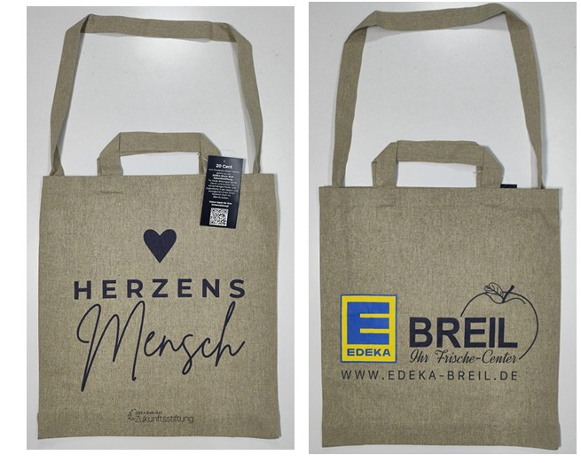 Mit Einkaufstaschen Chancen schenken- Von jeder Einkaufstasche werden 20 Cent an die Edeka Rhein-Ruhr Zukunftsstiftung für lokale Bildungsprojekte gespendet.